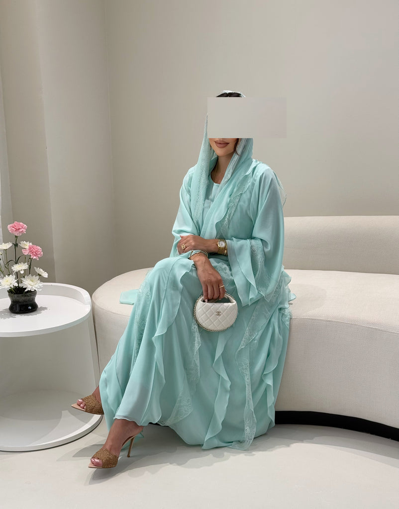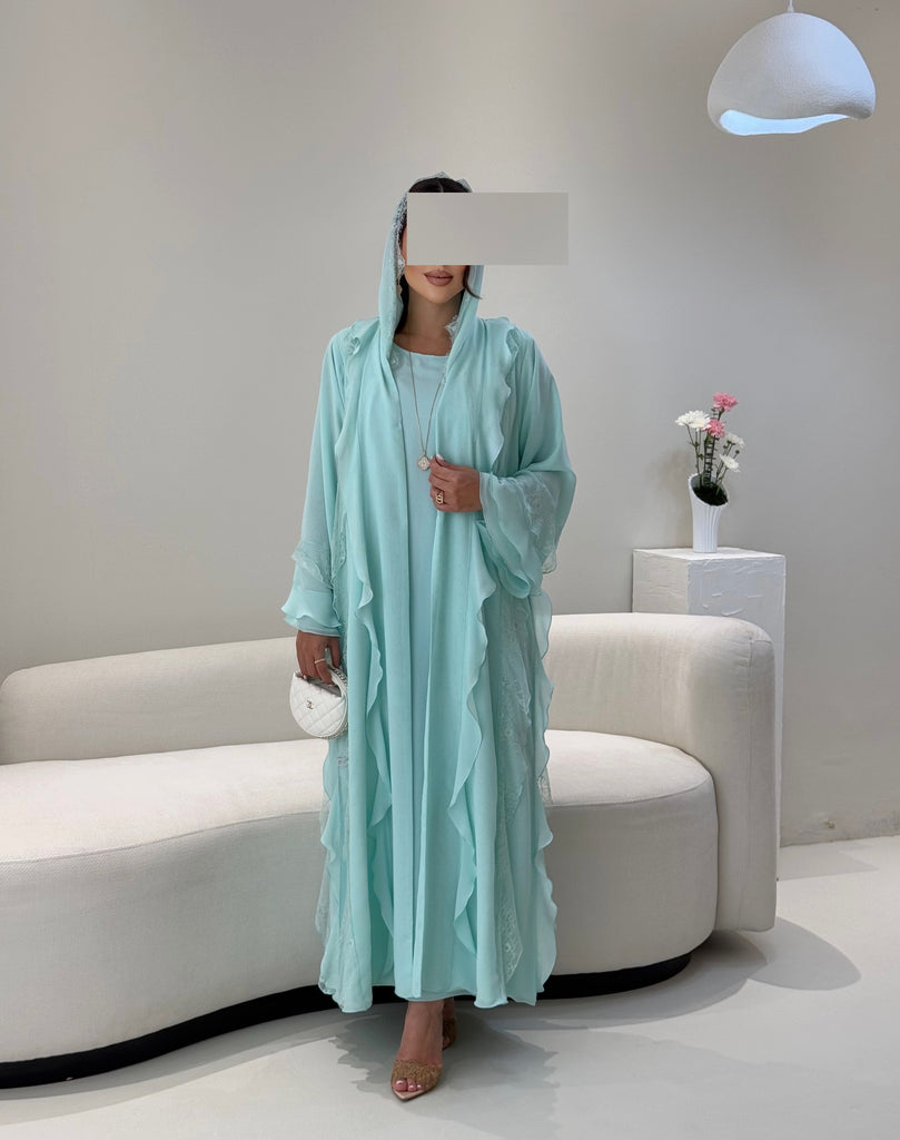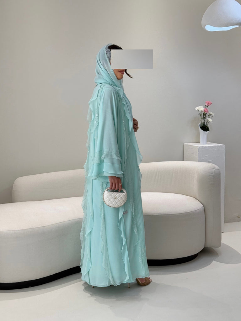 Soft double shiffon with ruffles abaya
